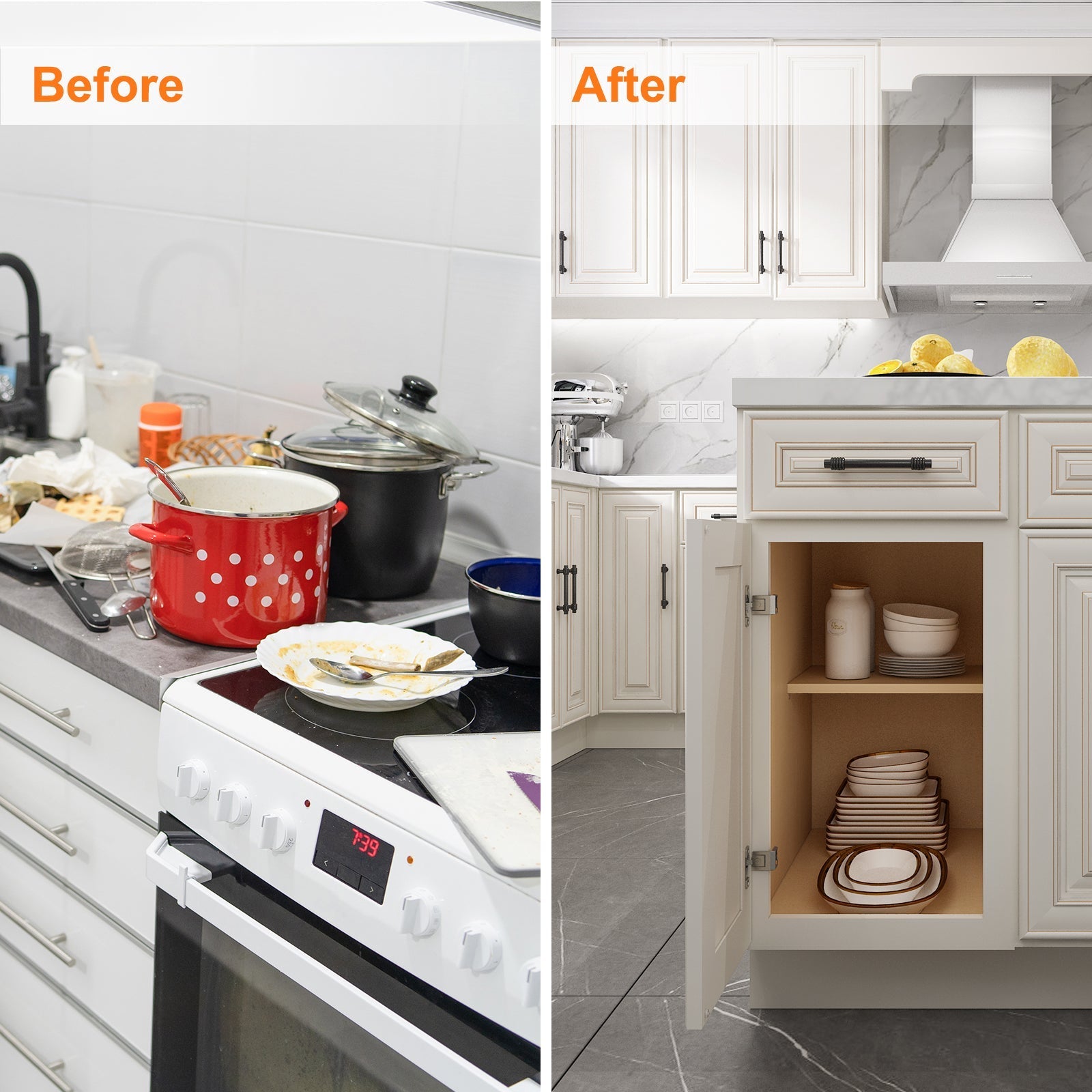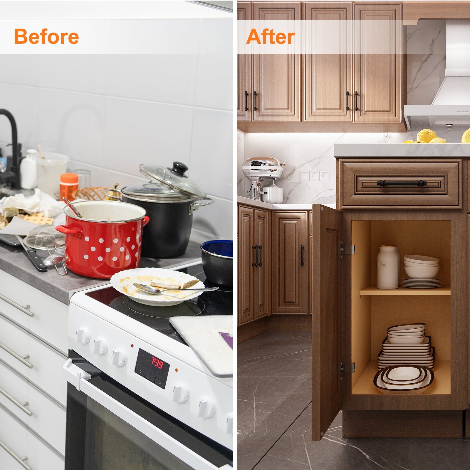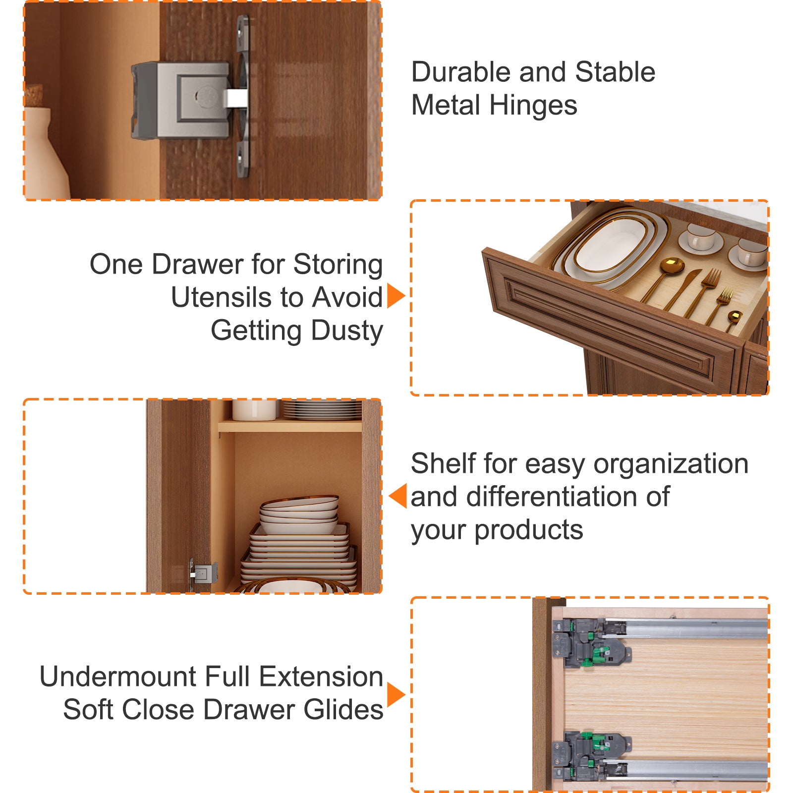 - Soft-closing cabinet doors without noise
