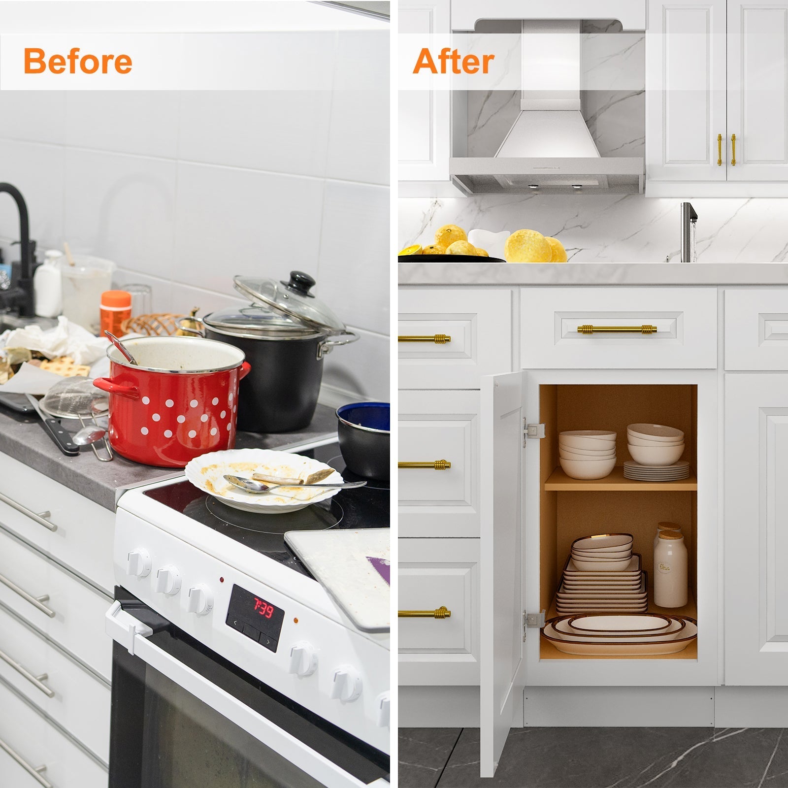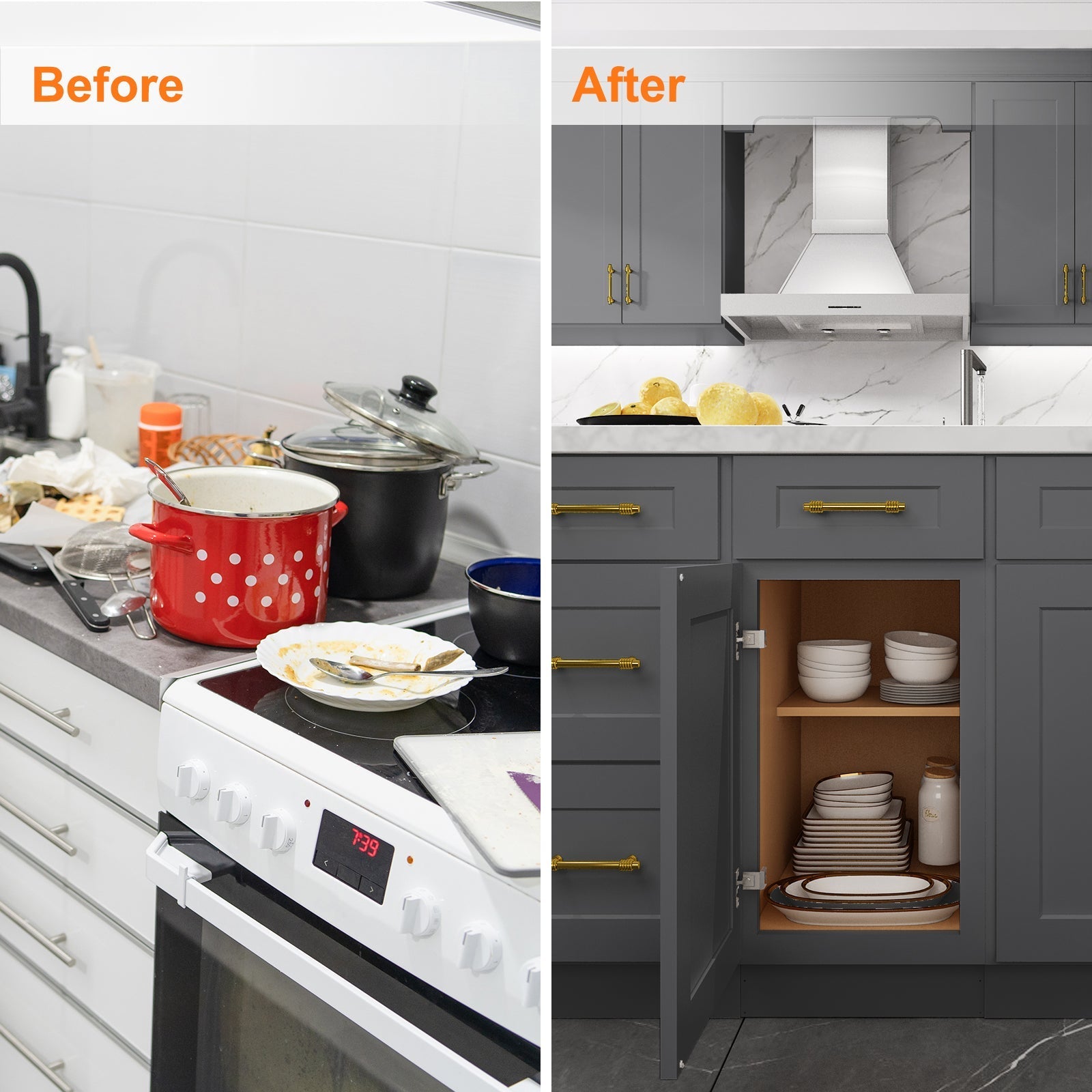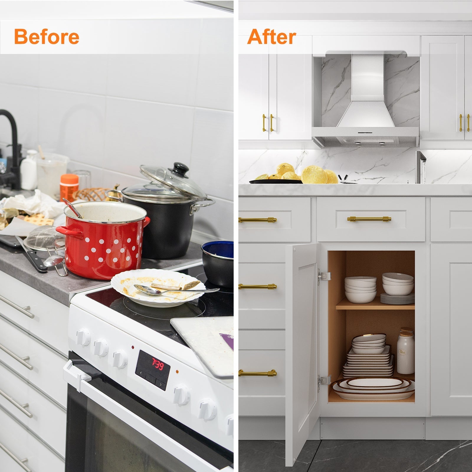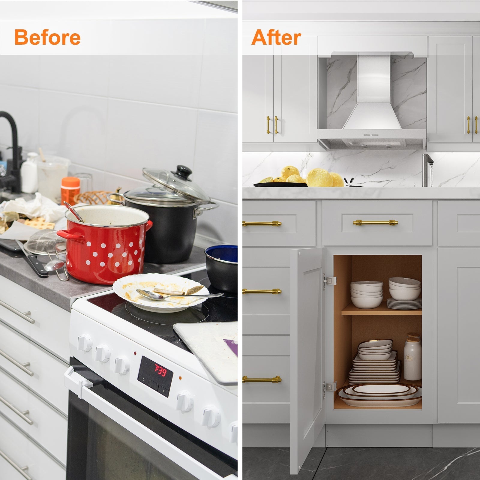 - Soft-closing cabinet doors without noise