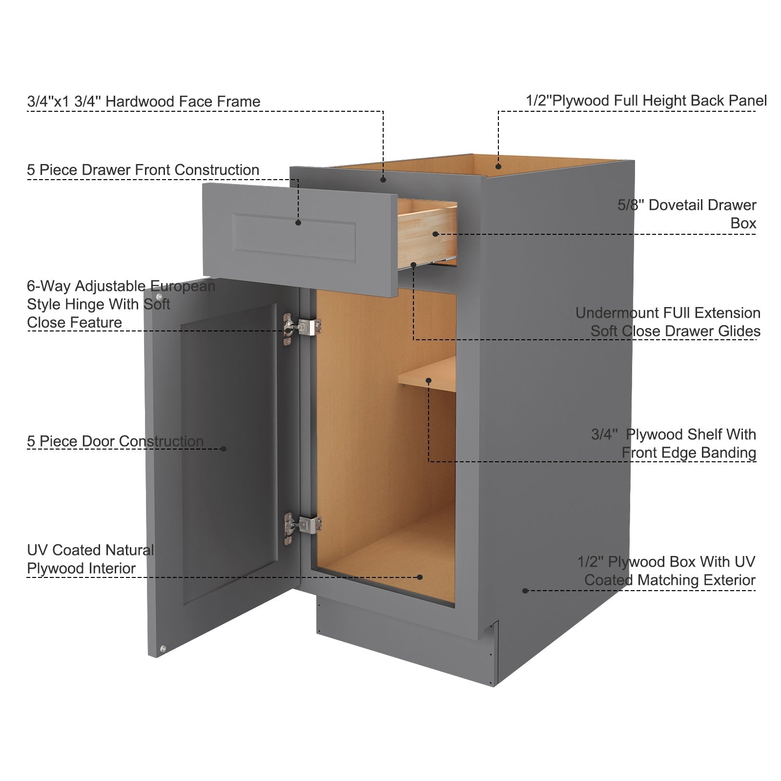 24"D Birch Solid Wood X 18"W X 34-1/2"H Base Kitchen Cabinet B18