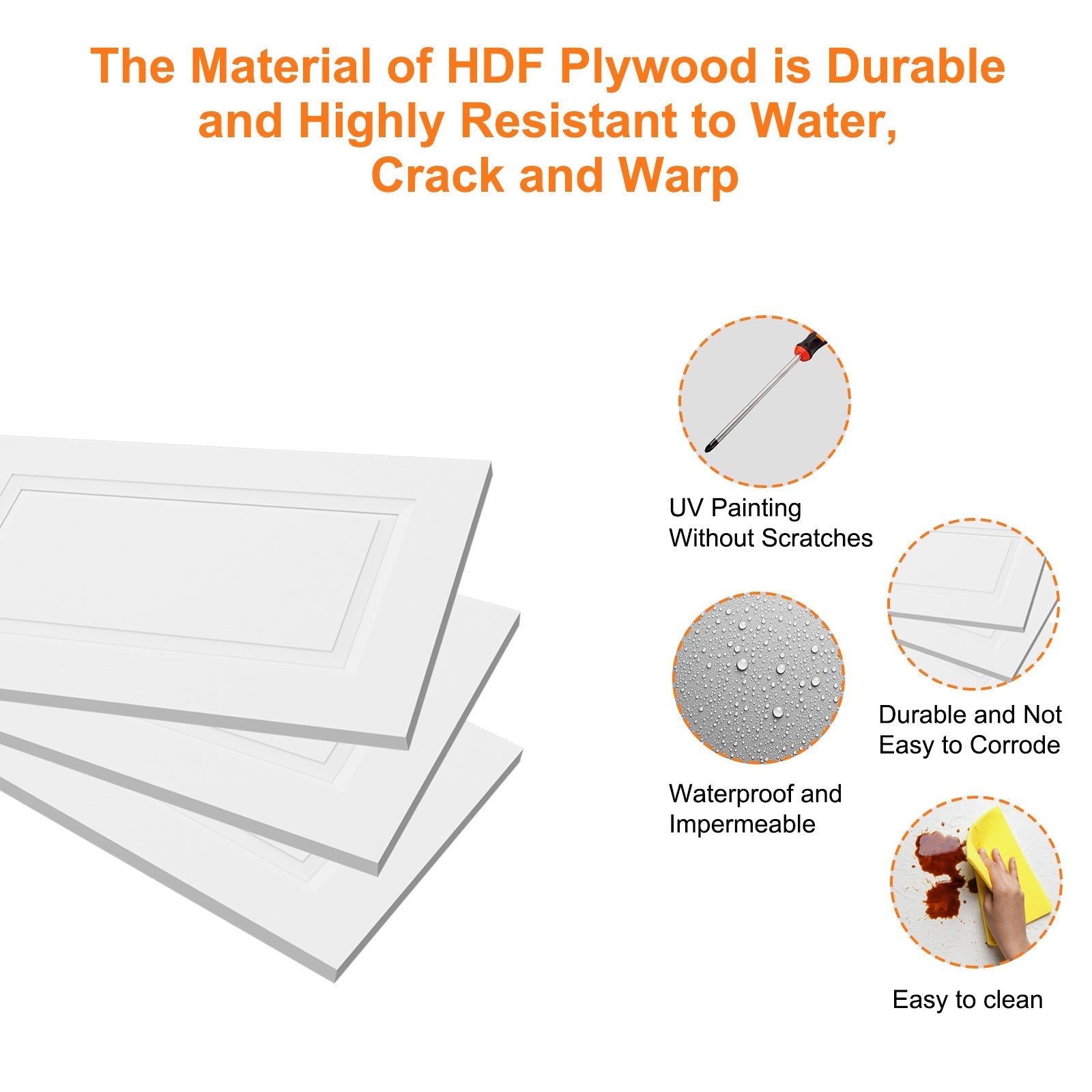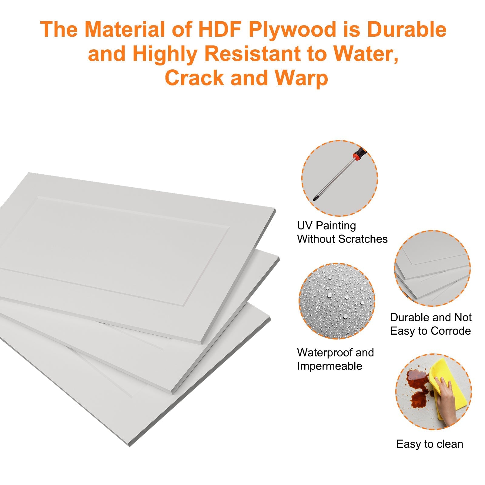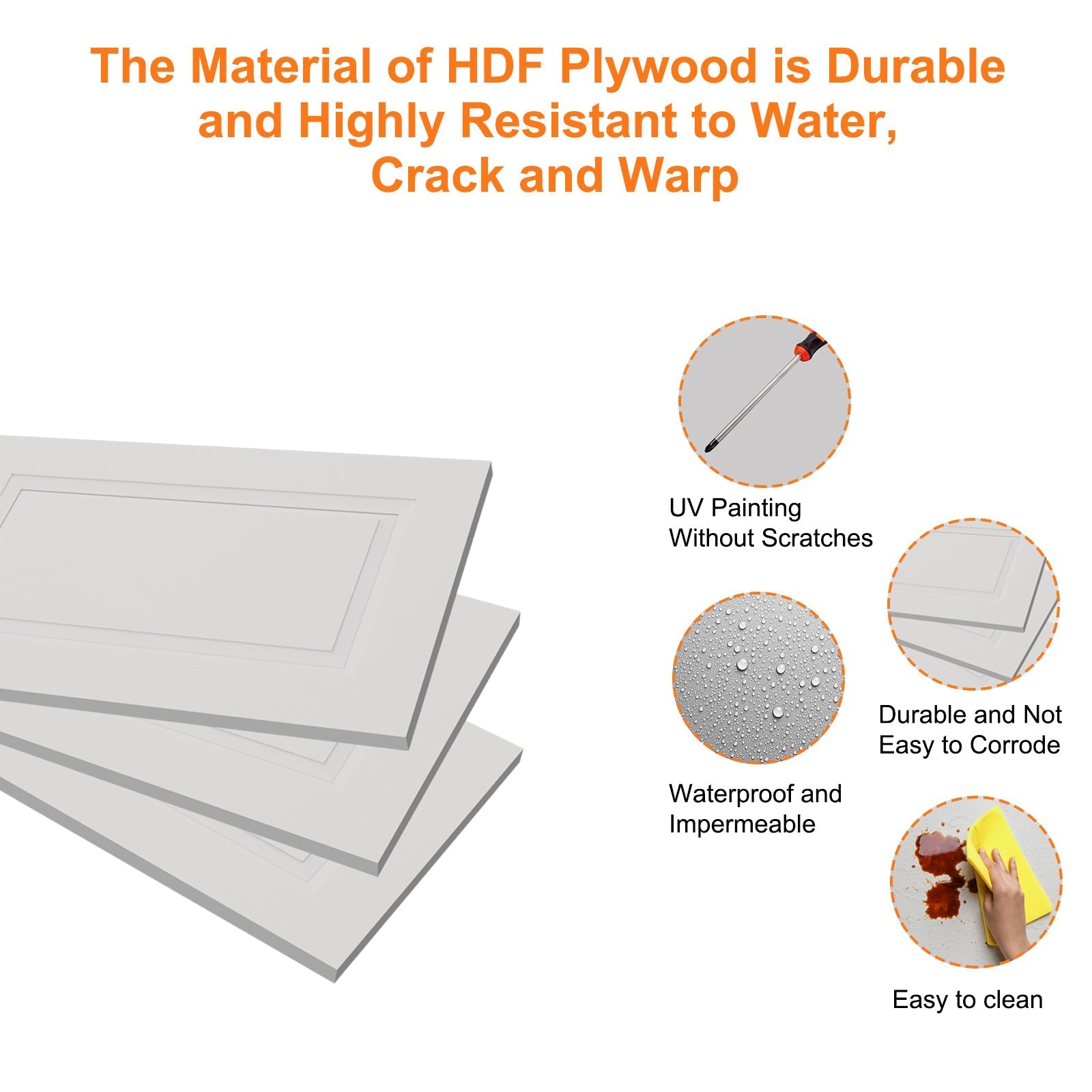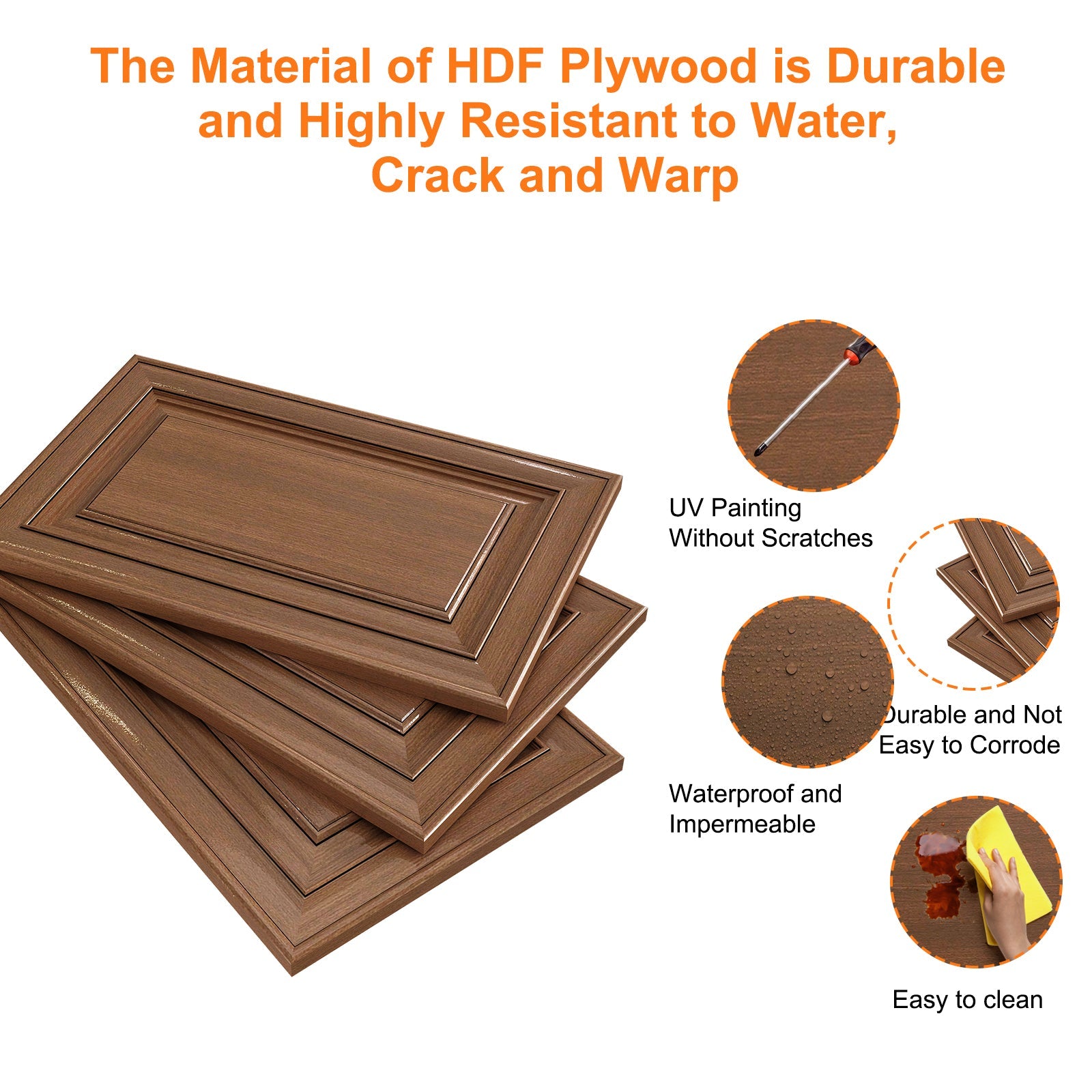 HDF (High-Density Fiberboard) is a highly durable, strong, and dense engineered wood product. Its smooth surface is ideal for painting and laminating, providing a consistent finish. HDF is resistant to moisture, making it suitable for damp environments, and it's more affordable than solid wood.