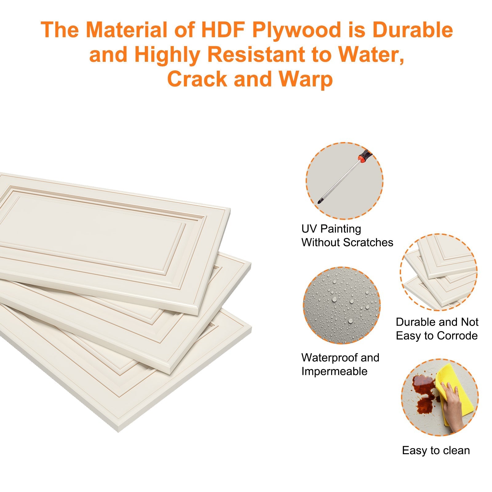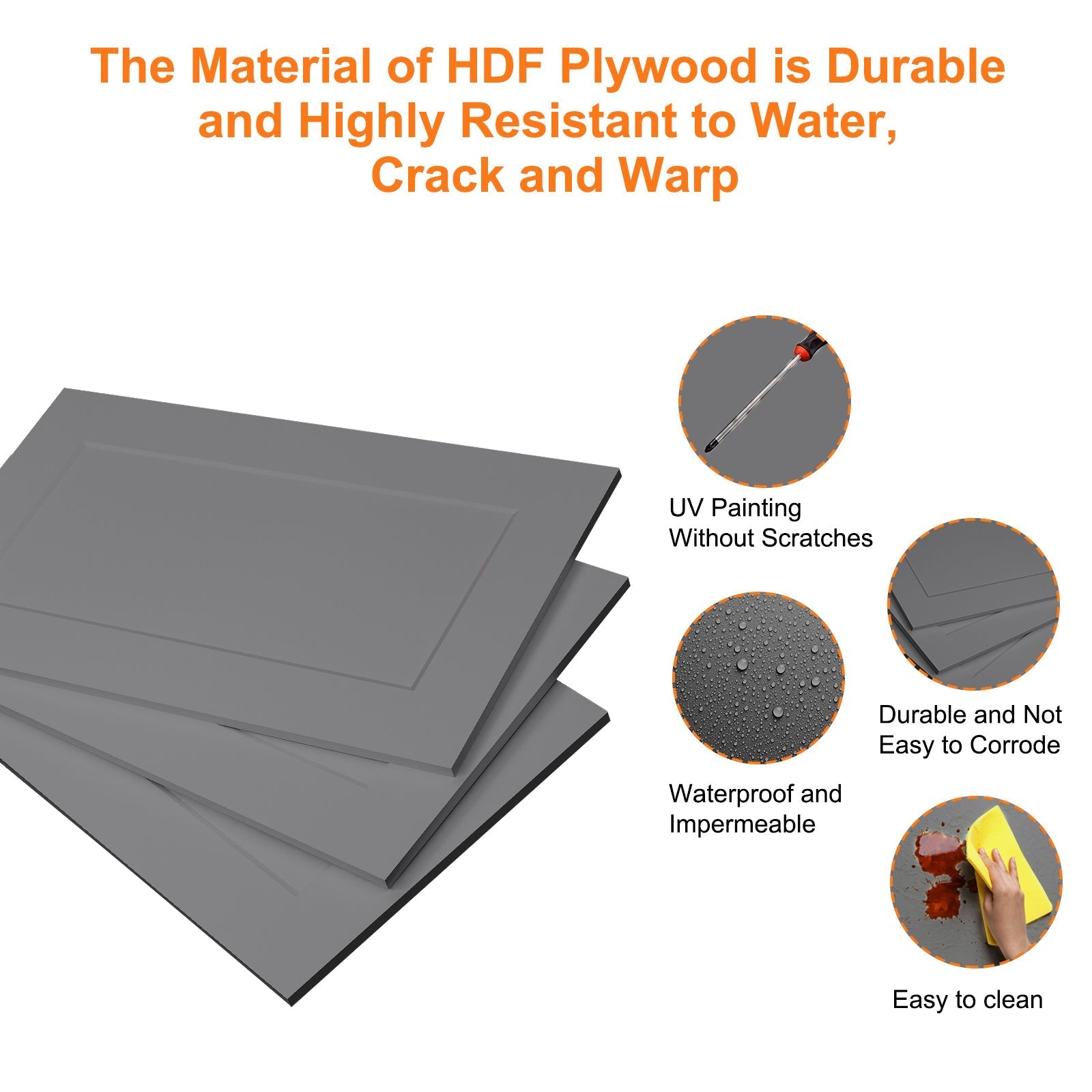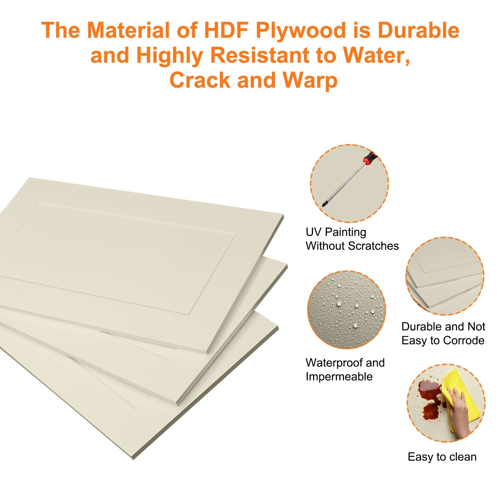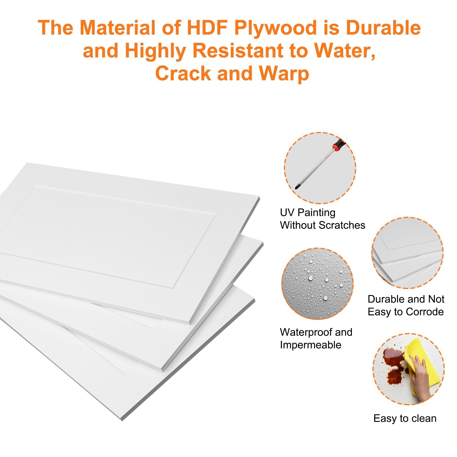 HDF (High-Density Fiberboard) is a highly durable, strong, and dense engineered wood product. Its smooth surface is ideal for painting and laminating, providing a consistent finish. HDF is resistant to moisture, making it suitable for damp environments, and it's more affordable than solid wood.